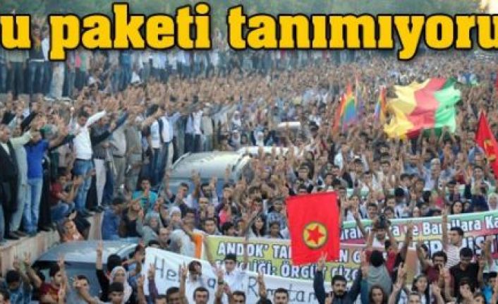 "21 mart'ta sayın Abdullah Öcalan'ın manifestosu ile bu halk kararını verdi. Hükümete güvenerek değil, kendi önderine güvenerek 'ben çözüm sürecini destekliyorum' dedi. Taleplerini meydanlarda haykırdı. Ama bugün iktidar hiç bir değişiklik yapmadan halkın kendi gücü, insiyatifiyle elde ettiği hakları biz size veriyoruz diyor. Bu alay etmeye biz izin vermeyeceğiz. Onbinlerce siyasi tutsağın içerde olduğu bir dönemde Başbakan çıkıp demokratik siyaset konuşacak diyor. Sormazlarmı sana bu siyasetçileri kim tutukladı? bunları serbest bırakmayan kim. Bugün bu paketle aslında cazevlerindeki arkadaşlarımızın tutukluluk haline devam denmiştir. Ana dilde eğitimin kabul edilmediği, seçim barajının kaldırılmadığı, İmralı koşullarının değiştirilmediği, sayın Öcalan'ın müzakere koşullarının gereğinin yerine getirilmediği için bu paketi tanımıyoruz, bu paketi tanımayacağız. Bir an önce oyalamadan, halkla alay etmeden bu taleplerin yerine getirilmesi gerekiyor. Anayasal taleplerimiz de var. Şu anda Anayasa'da ana dilde eğitim yasak. Ama AKP bu yasağı kaldırmıyor. Hiç bir ilerleme kaydetmeden Anayasa çalışmsalarında muhalefeti suçlamayı tercih ediyor. Biz o masada Türkiye halklarının bütün hak ve özgürlüklerini savunmaya devam edeceğiz. Bugün Diyarbakır bu görkemli yürüyüşü ile paketi kabul etmediğini, etmeyeceğini göstermiştir. Bunu Ankara iyi okumalıdır. Sayın Öcalan'ın özgürlüğü Kürt halkının özgürlüğüdür. Bu nedenle bu yürüylüşten ne istediğimizi herkes çok iyi biliyor" dedi. / ajanslar