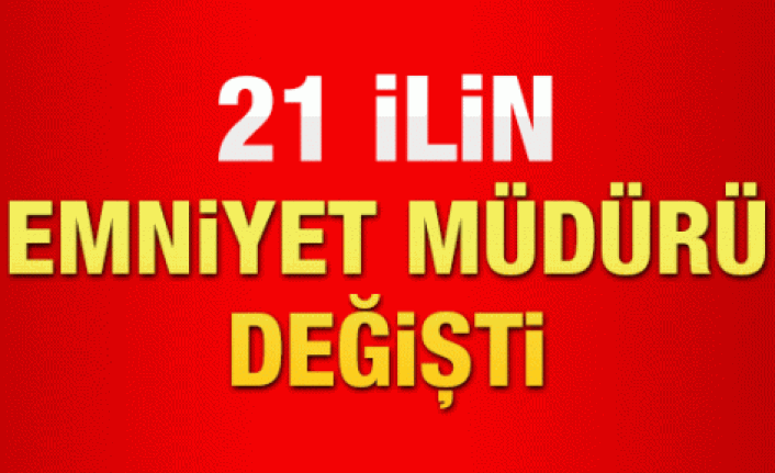 İçişleri Bakanlığı genelgesine göre, Artvin Emniyet Müdürlüğüne Polis Başmüfettişi Alaattin AKBAŞ, Bartın Emniyet Müdürlüğüne Şırnak Emniyet Müdürü İsa AYDOĞDU, Bilecik Emniyet Müdürlüğüne Polis Başmüfettişi Ali Ekber BEKTAŞ, Bitlis Emniyet Müdürlüğüne Polis Başmüfettişi Fatih KAYA, Burdur Emniyet Müdürlüğüne Bilecik Emniyet Müdürü Eyüp ÖZÜDOĞRU, Bursa Emniyet Müdürlüğüne Polis Başmüfettişi Selami YILDIZ, Denizli Emniyet Müdürlüğüne Konya Emniyet Müdürü Hüseyin NAMAL, Edirne Emniyet Müdürlüğüne Polis Başmüfettişi Armağan Adnan ERDOĞAN, Gaziantep Emniyet Müdürlüğüne Polis Başmüfettişi Erhan GÜLVEREN, Isparta Emniyet Müdürlüğüne Polis Başmüfettişi Halil ALTAN, Kahramanmaraş Emniyet Müdürlüğüne Polis Başmüfettişi Servet YILMAZ, Kars Emniyet Müdürlüğüne Polis Başmüfettişi Faruk KARADUMAN, Konya Emniyet Müdürlüğüne Denizli Emniyet Müdürü Mevlüt DEMİR, Mardin Emniyet Müdürlüğüne Polis Başmüfettişi Lütfullah Uğur PEKCAN, Mersin Emniyet Müdürlüğüne Polis Başmüfettişi Dr. Rahmi BAŞTUĞ, Muş Emniyet Müdürlüğüne Polis Başmüfettişi Ahmet Cemal ÇALIŞKAN, Ordu Emniyet Müdürlüğüne Isparta Emniyet Müdürü Caner TAYFUR, Osmaniye Emniyet Müdürlüğüne Polis Başmüfettişi Nurettin GÖKDUMAN, Uşak Emniyet Müdürlüğüne Polis Başmüfettişi İbrahim ERGÜDER, Şırnak Emniyet Müdürlüğüne Polis Başmüfettişi Celal SEL, Yalova Emniyet Müdürlüğüne Polis Başmüfettişi Mehmet Ali SÜVARİ atandı.