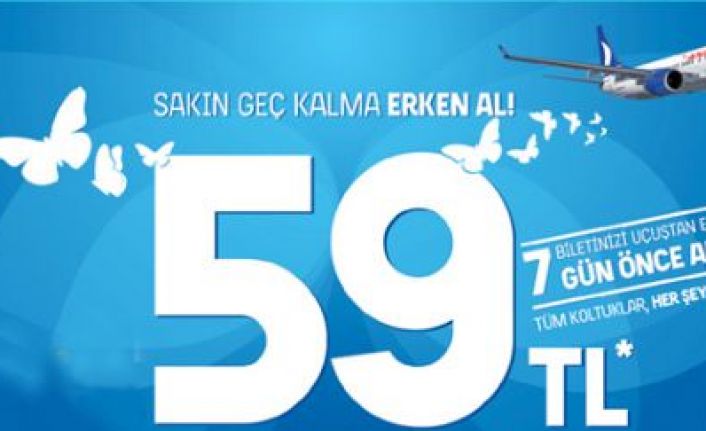 AnadoluJet yolcularına en ekonomik seyahat seçeneklerini sunmaya yeni yılda da devam ediyor. 14 Şubat – 9 Temmuz 2015 tarihleri arasında 59,99 TL ‘den başlayan fiyatlarla uçabilirsiniz. Bunun için biletlerinizi 5-11 Ocak 2015 tarihleri arasında almanız yeterli. Haydi, sizde planlarınızı erkenden yapın, 59,99 TL’lik avantajdan yararlanma fırsatını kaçırmayın.