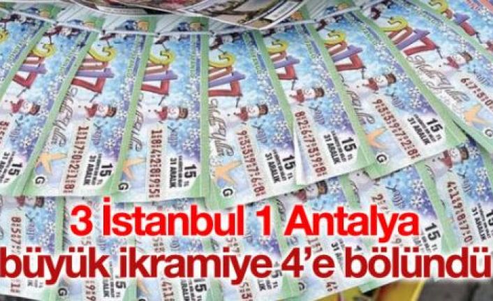 Ankara’da bulunan Milli Piyango İdaresi’nde yapılan yılbaşı çekilişinde 60 milyon liralık büyük ikramiye isabet eden numara 2796288 oldu. Büyük ikramiye kazanan 4 çeyrek biletten 2’si İstanbul 2’si ise Antalya’dan çıktı.