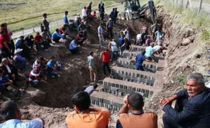 Cenazeler, köy mezarlığında yan yana toprağa verildi.