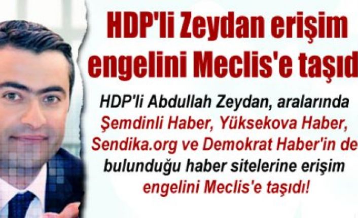 HDP'li Abdullah Zeydan, aralarında Şemdinli Haber, Yüksekova Haber, Sendika.org ve Demokrat Haber'in de bulunduğu bazı haber sitelerine yönelik TİB tarafından erişim engeli konulmasını Meclis'e taşıdı.