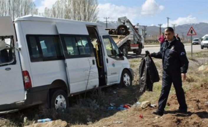 Turgutlu çıkışına geldiğinde Çetin, midibüsün direksiyon kontrolünü yitirdi. Kontrolden çıkan midibüs, savrularak yol kenarındaki Turgutlu Belediye Mezarlığı'nın duvarına çarptı. 50 santimetre yüksekliğindeki duvarın yıkıp, mezarlığa dalan midibüs, devrildi. 3 mezar zarar görürken midibüsteki işçilerden 1'i ağır, 20'si yaralandı.