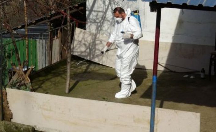 Öte yandan, mahallede şarbon şüphesi üzerine İlçe Gıda, Tarım ve Hayvancılık Müdürlüğü ve İlçe Sağlık Müdürlüğü ekiplerince başlatılan çalışmalar sürerken, ineğin kesildiği yer ve hayatını kaybeden Fatma Çakır’ın oturduğu ev ile çevresi de ilaçlandı. (TRABZON/DHA)