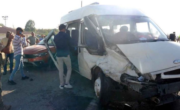 Van'ın Erciş ilçesinde minibüsün, karşı yönden gelen hafif ticari araçla çarpışıp, ardından savrularak park halindeki bir otomobile çarptığı kazada 19 kişi yaralandı.