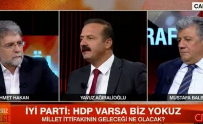Ağıralioğlu’nun “Biz CHP ile katolik nikahı kıymadık” açıklamasını hatırlatan Ahmet Hakan, “CHP ne yaparsa sizin bardağınızı taşırır?” diye sordu. Ağıralioğlu “HDP ile ittifak yaparsa biz olmayız” yanıtı verdi. Hakan aynı konuya ilişkin arka arkaya benzer sorular yöneltince Balbay’ın tepkisini çekti.