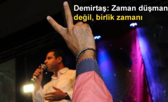 Herkesin başkasının etnik kökenini kabul ederek, birbirinin inançlarına saygı göstererek, kendi kimliğini inkar etmeden, başkasına düşmanlık yapmadan bir arada yaşayabileceğine vurgu yapan Demirtaş, “Zaman düşmanlık zamanı değil. Zaman iletişim zamanıdır. Birlik zamanıdır. Biz Ortadoğu’nun ortasında Rojava’yı inşa edecek gücü ve cesareti bulmuşsak, artık kimse bizi durduramaz. Bu halkı artık hiç kimse durduramaz” diyerek konuşmasını sürdürdü.
