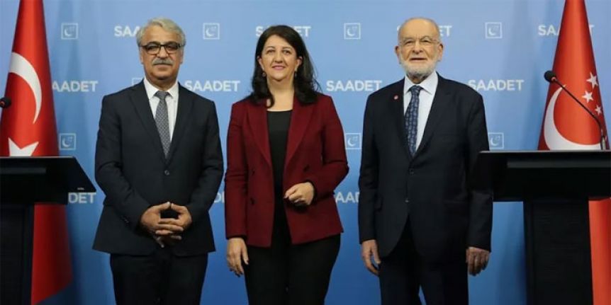 Yaklaşık bir saat süren görüşmenin ardından HDP Eş Başkanları Pervin Buldan ve Mithat Sancar ile Saadet Partisi Genel Başkanı Temel Karamollaoğlu kameraların karşısına geçerek ortak açıklama yaptı.