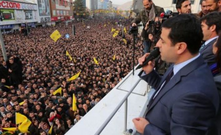 Demirtaş konuşmasında, "Buradan AKP'ye sesleniyorum. Siz buraya avuç avuç para akıtsanız, bu kalabalığı toplayamazsınız. Çünkü bu meydandaki insanlar özgürlüğe sevdalı insanlardır. Öyle paraya, pula, makarnaya, kömüre tenezzül edecek bir halk değil. Bu halk Özgürlüğe doğru yürüyor ve özgür olacak. Bu halk direnerek bu noktaya geldi. Devletin tekçi zihniyetini dayatarak AKP'nin tekçi ampulü burada yansın diye çok uğraştılar. Bakın bir halk karar vermişse o halk özgür yaşayacak. Bunun önüne geçemezsiniz. Saygıdeğer Van halkı bu kentte hangi etnik kimliğe sahip olursa olsun, hangi partiye oy verirse versin ayrım gözetmeden hizmet etmeye çalıştık. Hiçbir insanı diğerinden ayırmadık. Ancak 'Burada BDP'lilere yer yok, buradan BDP'yi sileceğiz' diyen anlayışla 30 Mart akşamı bu halk hesaplaşacaktır. BDP'yi Kürt halkının sırtında kambur olarak görenler kusura bakmayın sizin ağa babalarınız, paşa babalarınız tankıyla topuyla geldi ama başaramadı ve sizler de başaramayacaksınız. Sizler BDP'ye rakip olamazsınız. Alayınız 30 Martta o sandıklara gömüleceksiniz. Ama şimdi BDP bizi engelliyor demeye başladılar. Ama ne yaparsanız yapın 30 Mart sabahı yenileceksiniz. Ant içtik, söz verdik” diye konuştu.