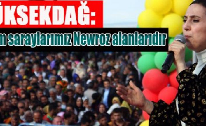 Yüksekdağ, son olarak HDP'nin saraylarının alanlar olduğunu vurgulayarak, şunları söyledi: "Bizim Newrozlarımız alanlardadır. Bu alanları dişe diş bir mücadeleyle kazandık. Bu alanlar bizim şerefimizdir, onurumuzdur ve özgürlüğümüzdür. Biz onlar gibi saraylarda Newroz kutlayan bir zihniyetin sahibi asla ama asla olmadık. Şuna bir kere daha emin olsunlar o saraylarda yaptıkları kutlamanın hiçbir gücü yoktur. Bizim saraylarımız bu alanlardır. Halkın gönlünün yüreğinin saraylarında kutlanan Newrozlar ve burada yakılan ateşlerle Türkiye'nin geleceğini aydınlatacağız."