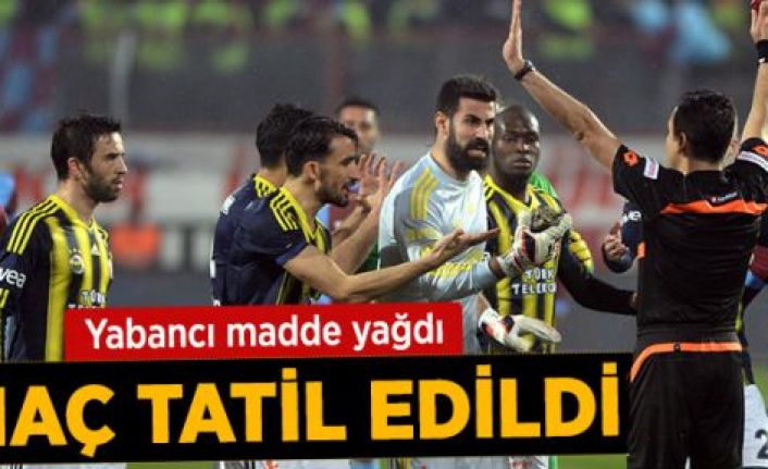 28. dakikada yardımcılarını saha içine çağırıp görüşen Bülent Yıldırım, 45+10'da Volkan Demirel'in koruğu kaleye atılan patlayıcı maddeler yüzünden bu kez doğrudan soyunma odasına gitti. Eğer sahaya o maddeler atılmasa Trabzonsporsoldan serbest vuruş kullanacak ve hemen ardından hakemin ilk yarıya eklediği 10 dakikalık süre dolduğundan, Bülent Yıldırım devreyi bitirecekti. Ancak sahaya atılan patlayıcı maddeler nedeniyle, hakem ilk yarının bitiş düdüğünü çalmadan, yardımcıları ile birlikte soyunma odasına gitti. Hakemlerle birlikte Fenerbahçeli futbolcular da soyunma odasının yolunu tuttu.