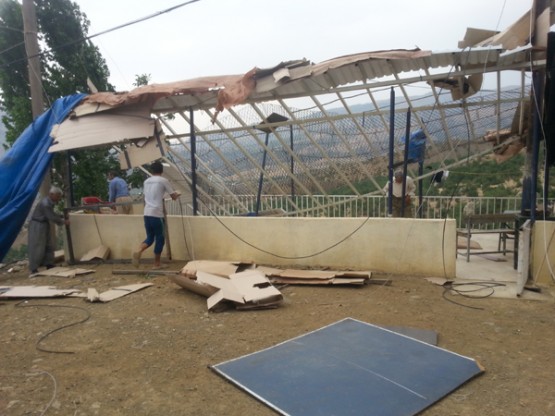 Derecik Beldesi'nde rüzgar çatıları uçurdu
