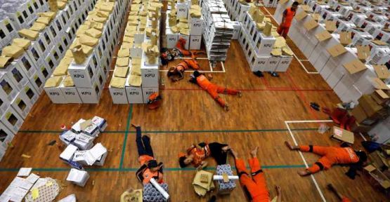 En çok seçmenin oy verdiği ülke olan Endonezya’da, 11 gün önceki seçimde kullanılan oyların sayımı için yaklaşık yedi milyon kişinin çalıştığı belirtiliyor. Sandık görevlilerinin gece geç saatlere kadar zorlu koşullarda çalıştırılması nedeniyle seçim kurulu günlerdir eleştiriliyor. Sağlık Bakanlığı ise 23 Nisan’da hastanelere bir mektup yazarak, hastalanan seçim görevlilerine özel ilgi gösterilmesini istedi.