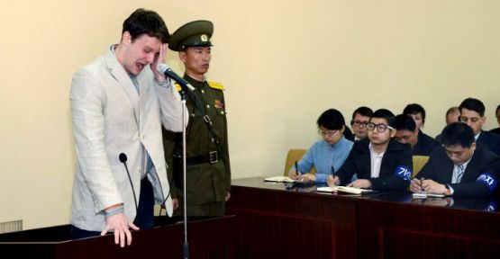 Virginia Üniversitesi öğrencisi Warmbier, turistik bir gezi için gittiği Kuzey Kore’de kaldığı otelin lobisinden bir propaganda posterini çaldığı gerekçesiyle gözaltına alınmıştı. Warmbier, geçen mart Kuzey Kore Yüksek Mahkemesi tarafından bir saat süren yargılamada 15 yıl ağır iş cezasına mahkum edilip tutuklanmıştı.