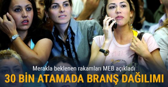 Öğretmen atamasına ilişkin branş dağılımı bakanlığın internet sayfasından yapılan açıklamayla duyuruldu.