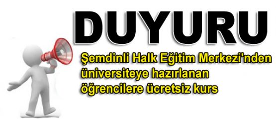 Hakkari'nin Şemdinli İlçesi'nde Şemdinli Halk Eğitim Merkezi Müdürlüğü bünyesinde üniversiteye hazırlanan öğrenciler için ücretsiz kurs açılıyor.