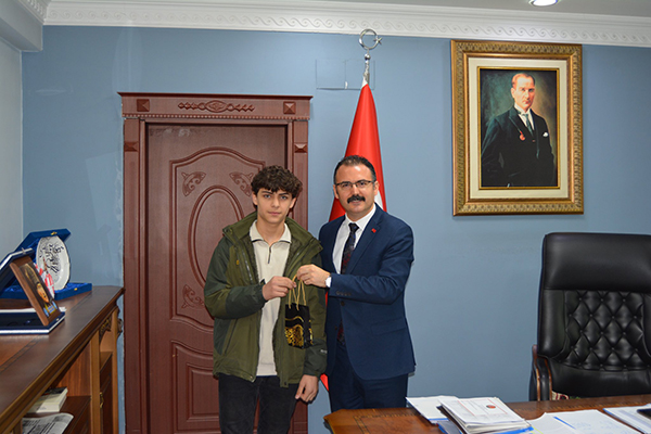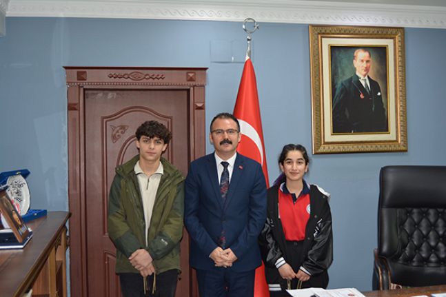 Kaymakam Ateş, İlçe Milli Eğitim Müdürü Cihat İnan ile makamında kabul etti. Öğrencilerle kısa bir sohbet eden Ateş, öğrencileri tebrik ederek başarılarının devamını diledi.