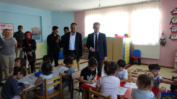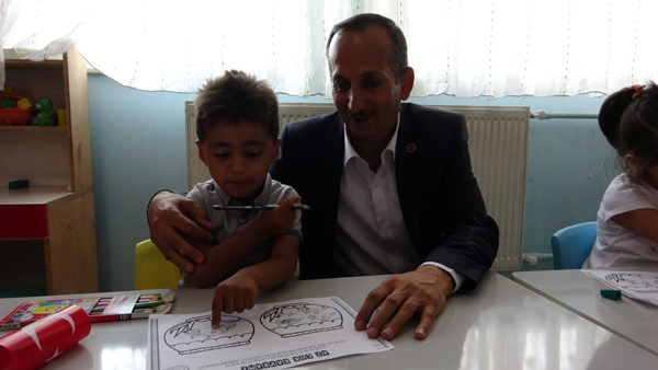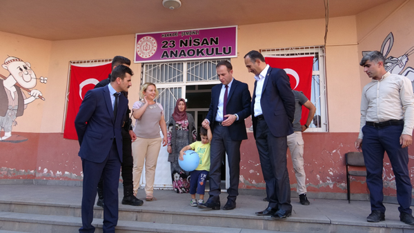 Kaymakam Güven, Belediye Başkanı Saklı ve beraberindekiler daha sonra 23 Nisan Anaokulu'nu ziyaret etti. Minik öğrencilerler yakından ilgilendi.