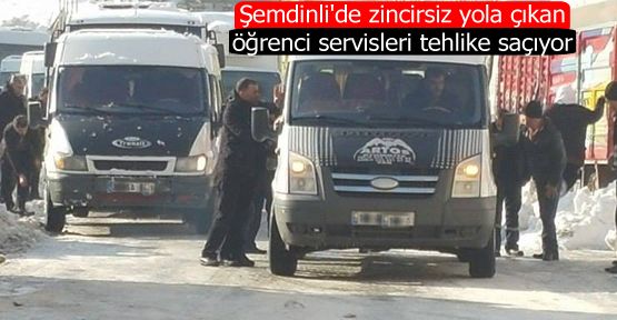 Şemdinli İlçesi'nde zincirsiz yola çıkan öğrenci servisleri tehlike saçıyor. Zincirsiz yola çıkan öğrenci servisleri ilçenin Karşıyaka mahammesinin Çiftçiler Petrol Ofisi mevkinde yokuşu çıkamadı. Birçok okul servisinin yokuşta kalması nedeniyle yol kısa süreliğine ulaşmıma kapandı. Yolda kalan okul servisleri nedeniyle öğretmenler ve öğrenciler yaya olarak okula gitmek zorunda kaldı.