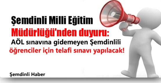 Şemdinli İlçe Milli Eğitim Müdürlüğü'nden alınan bilgilere göre Hakkari'nin Yüksekova İlçesi'nde Açık Lise sınavına katılacak Şemdinlili öğrencilerin yoğun kar yağışı nedeniyle Şemdinli - Yüksekova karayolunun zaman zaman ulaşıma kapanmasından dolayı, sınava gidemeyen Şemdinlili öğrenciler için telafi sınavının yapılacağı belirtildi.