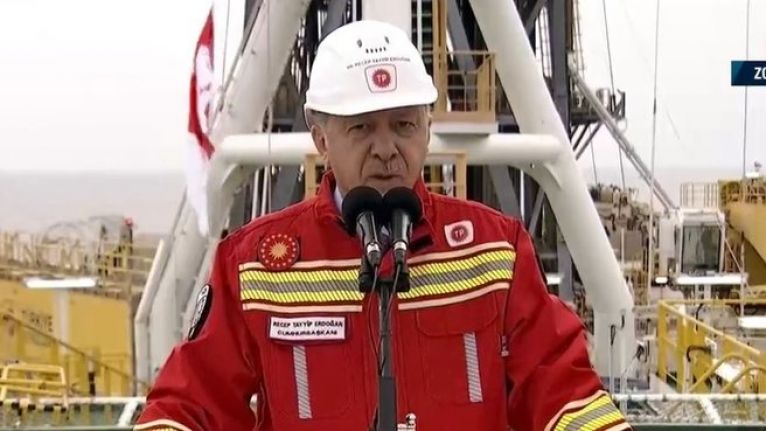 "Karadeniz'deki rezerv ülkemizin en büyük hidrokarbon kaynağıdır. Devamının da geleceğine inandığım bu keşiflerle inşallah ülkemizin doğal gazda dışarıya bağlılığı önemli ölçüde azalacaktır. Bu daha ucuz doğalgaz anlamına gelmektedir. Bu hizmetleri milletimize daha düşük fiyatla sunabileceğiz. Hedefimiz 2023 yılında bu gazı milletimizin kullanımına sunmaktır. Bu keşfin değeri kadar önemli kaydettiğim diğer husus da milletimize büyük moral vermiş olmasıdır. Doğu Akdeniz'de hiçbir zorbalığa, komedi düzeyine varan oyunlara eyvallah etmeyeceğiz. Ülkemizin ve Kıbrıs halkının haklarını hiçe sayan hiçbir oldu bittiye izin vermemeye kararlıyız." / DUVAR
