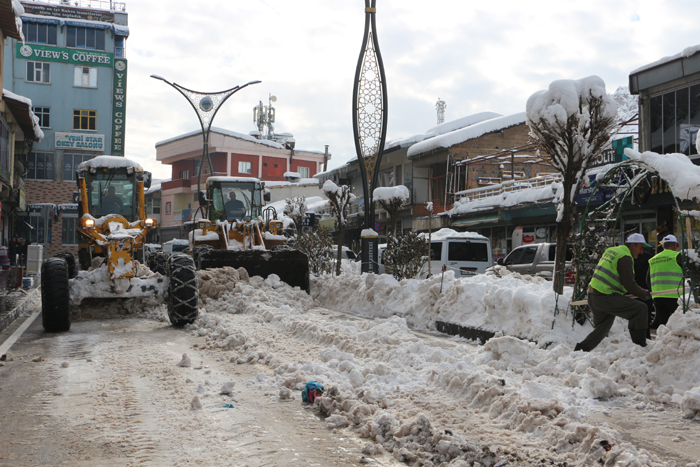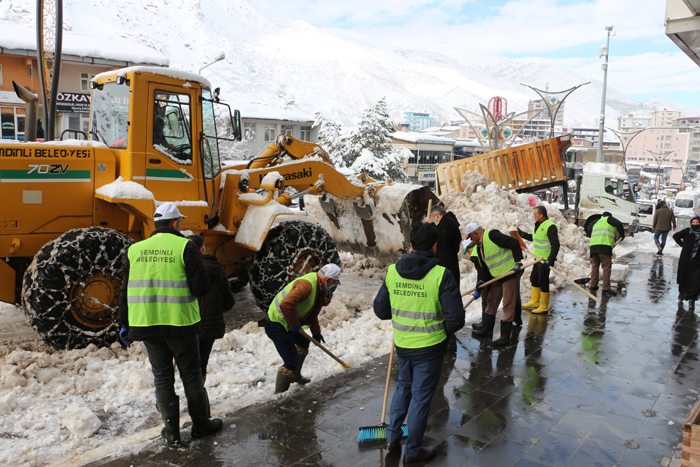 Şemdinli'de 2 gün boyunca süren ve etkili olan kar yağışı hayatı olumsuz etkilerken ve Şemdinli Belediyesi, kar yağışının durmasıyla kar temizleme çalışması başlattı. Gece geç saatlere kadar süren kar temizleme çalışmaları verilen aranın ardından sabah erken saatlerinde yeniden başlatıldı. Belediye Başkanı Tahir Saklı başkanlığında başlatılan kar temizleme çalışmalarına belediyenin tüm personelleri katıldı. Başkan Saklı zaman zaman kürekle kar temizleyerek personellere destek olarak, belediyenin tüm imkanlarının seferber edildiğini, iş makineleri ile personellerinin kar temizleme çalışmalarına katıldığını kaydetti.