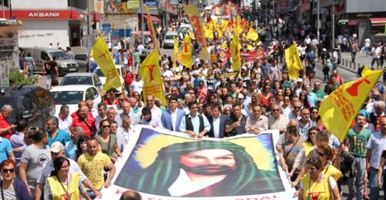 Miting öncesi Mehmet Ayvalıtaş Parkı önünde toplanan kitle, sloganlar eşliğinde İskele Meydanı’na yürüdü. Hz. Ali’nin fotoğrafı ile Sivas Katliamı’nda yaşamını yitiren 33 Alevi aydının resimlerinin yer aldığı “Unutmadık, unutturmayacağız” yazılı dev pankartın açıldığı yürüyüşte, hep bir ağızdan, “Sivas’ı unutma, unutturma”, “Katil devlet hesap verecek”, “Biji berxwedana Kobanê”, “Katil IŞİD, iş birlikçi AKP”, “Sivas’ta yakanlar AKP’yi kuranlar”, “Sivas’ın hesabı sorulacak” sloganları atıldı.