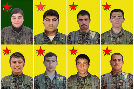 YPG Basın Merkezi tarafından resmi internet sitesinde yayınlanan bir açıklamayla, Kobanâ ve Cizîr kantonlarında DAIŞ çetelerine karşı devam eden amansız direnişte yaşamını yitiren 9 savaşçısının kimlik bilgileri açıklandı.