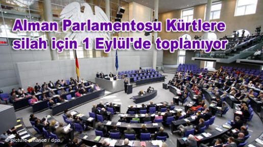 Alman haber ajansı DPA'nın parlamento kaynaklarına dayandırdığı haberine göre, IŞİD tehdidi karşısında gündeme gelen Kürtlere silah verilmesi konusunda parlamento olağanüstü bir oturum yapacak. Parlamenterler 1 Eylül günü bir araya gelerek, konuyu tartışacak.