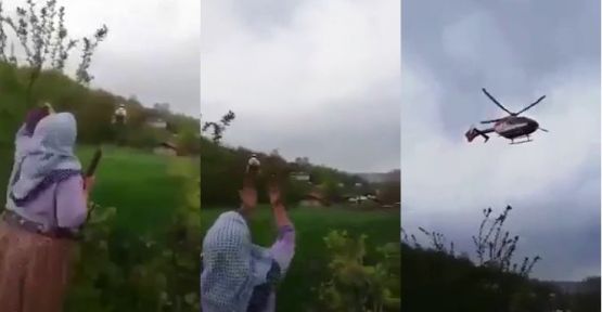 Ambulans helikoptere tarla sahipleri engel olunca helikopter hastaya müdahale edemeden geri dönmek zorunda kaldı.