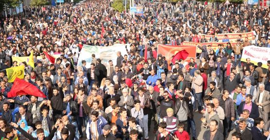 Amed’de on binlerce kişi, “insanlık için, Kobanê için 1 Kasım’da Küresel Eylem” çağrısı ile Kobanê için yürüdü. İstasyon Meydanı'nda bir araya gelen on binlerce kişi "Bijî Berxwedana Kobanê" sloganları attı. Amed yürüyüşünden kareler….