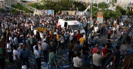 Diyarbakır İstasyon Meydanı'nda HDP'nin mitingi sırasında iki ayrı patlamada yaralanan 10 kişinin hastanede tedavisi devam ederken, bazılarının durumunun ağır olduğu belirtildi. Patlamalardan ilk saat 17.50 sıralarında platformdan yaklaşık 60 metre uzaklıktaki çöp kutusunda meydana geldi. Bu patlamanın trafodan kaynaklandığı anons edildi. Yaklaşık 5 dakika sonra bu kez hınca hınç dolu olan miting alanın yanındaki trafonun önünde kulakları sağır eden bir patlama meydana geldi. İlk belirlemelere göre parça tesirli bomba olduğu sanılan patlayıcının infilak etmesiyle, miting alanı bir anda karışırken, bu kesimde bulunanlardan 10 kadar kişi yaralandı. Kanlar içinde kalan yaralılar, koridor açılarak önce platformun yanına taşındı, ardından gelen ambulanslarla hastanelere sevk edildi. Yaralılardan durumu ağır olan ve bazı uzuvları kopanlar olduğu belirtildi.