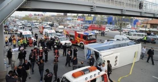 Ankara'da otobüs ile kamyonetin karıştığı kazada ilk belirlemelere göre 2 kişi öldü, 30 kişi yaralandı.