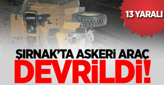 Şırnak'ın Uludere İlçesi'nde askeri zırhlı aracın kontrolden çıkıp devrilmesiyle meydana gelen kazada 13 asker yaralandı. Yaralılar helikopterle götürüldükleri Şırnak Asker Hastanesi'nde tedavi altına alındı.