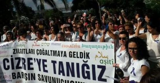 İstanbul, Bursa, Ankara, Dersim, Sakarya, Antalya, Adana başta olmak üzere bir çok kentten yola çıkan Barış İçin Kadın Girişimi üyeleri, Cizre'ye ulaştı. Kadınlar, "Sizden öğrenmek, size sarılmak, uzakta değiliz, buradayız demek için" Cizre'de olduklarını söyledi.