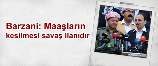 Kürdistan Bölgesi memurlarının maaşlarının kesmeye hiç kimsenin hakkının olmadığını belirten Barzani, "Biz bu durumu Kürdistan Halkına karşı bir savaş ilanı olarak biliyoruz" dedi.
