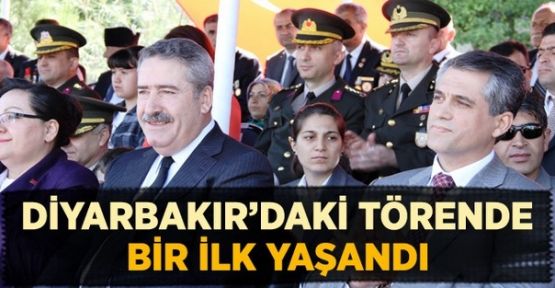 Günün önemini belirten konuşmalarından ardından çocukların gösterileri oldu. Törende bu yıl bir ilk de yaşandı. Geçtiğimiz günlerde başörtüsü takan rektör Saraç, ilk kez resmi bir bayramda protokoldeki yerini aldı. BDP ise 5 yıl sonra resmi törene katıldı. BDP’li Diyarbakır Büyükşehir Belediyesi Eşbaşkanı Fırat Anlı törene katıldı. / ajanslar