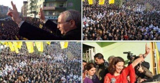 Miting havasında geçen karşılamada, halkı selamlayarak Kürtçe yaptığı konuşmada BDP'li Milletvekili Faysal Sarıyıldız, "Botan'dan Rojava'ya kadar bütün Kürt halkını, Rojava halkının direniş ruhuyla selamlarımı gönderiyorum. Serok Apo'nun bütün şervanlarını selamlıyorum. Zindanlardaki bütün yoldaşlarımıza selamlarımızı gönderiyorum" dedi.