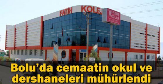 Bolu Belediyesi Zabıta Müdürlüğü ekipleri, dün Karaçayır Mahallesi Murat Canbaş Caddesi üzerinde bulunan ve 7 yıldır hizmet veren Özel Bolu Fatih Yumurcak Dünyası Anaokulu'nu mühürledi. Bolu Belediyesi'nin anaokuluna kiraladığı kendisine ait binanın yola bakan kısmına 'Bu bina projeye aykırı imalat yapılması nedeniyle belediyemizce mühürlenmiştir. Belediye sosyal hizmet alanı olarak Bolu halkına hizmet etmeye devam edecektir' yazılı tabela asıldı. Ekipler daha sonra aynı mahallede Ali Rıza Tekemen Caddesi üzerinde 15 yıldır faaliyet gösteren Anafen Dershanesi'ni mühürledi. Ekipler dershanenin caddeye bakan bölümüne binanın ruhsatsız olduğunu belirten tabela koydular. TEM Otoyolu Paşaköy turnikeleri girişinde bulunan ve geçen yıl eğitim öğretime açılan 16 derslikli Fatih Koleji ile D-100 Karayolu Paşaköy mevkiinde bulunan aynı koleje ait bina da projeye aykırı imalatlar olduğu gerekçesiyle mühürlendi. Bir günde cemaate yakınlığıyla bilinen dört eğitim kurumunun mühürlenmesi şaşkınlık yarattı.