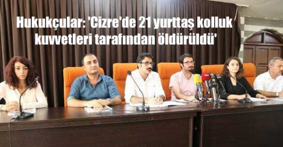 Mezopotamya Hukukçular Derneği (MHD), Özgür Hukukçular Derneği (ÖHD), Asrın Hukuk Bürosu, Toplum ve Hukuk Araştırmaları Vakfı (TOHAV) ve Şırnak Barosu tarafından 4-12 Eylül tarihleri arasında sokağa çıkma yasağının uygulandığı Cizre’de yaşananlara ilişkin 46 sayfalık rapor hazırlandı.