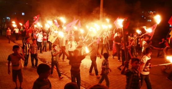 Nur Mahallesi Belediye Halk ve Taziye Evi önünde bir araya gelen binlerce kişi meşaleler yakarak Nur Mahallesi boyunca “Biji berxwedana Rojava”, “Kobani yalnız değildir”, “Her yer Kobani her yer direniş” ve “Biji Serok Apo” sloganları eşliğinde yürüyüş gerçekleştirdi. Uzun süre devam eden meşaleli yürüyüşte kitle son olarak İdil Caddesi’ne çıkarak Cizre şehir merkezine doğru yürüyüşüne devam etti.