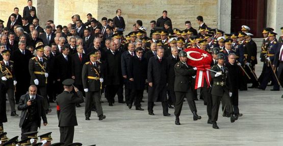Aralarında TBMM Başkanı İsmail Kahraman, Başbakan Binali Yıldırım, CHP Genel Başkanı Kemal Kılıçdaroğlu, MHP Genel Başkanı Devlet Bahçeli, Genelkurmay Başkanı Orgeneral Hulusi Akar ve kuvvet komutanları, başbakan yardımcıları, bakanlar ve yüksek yargı organlarının başkanlarının bulunduğu heyet Aslanlı Yol’dan yürüdü. Heyet, Atatürk mozolesine çelenk koyarak saygı duruşunda bulunmasının ardından Misakı Milli Kulesi’ne geçti ve Erdoğan’ın Anıtkabir Özel Defterini imzalamasının ardından tören sona erdi.