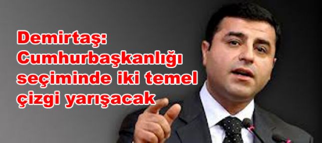 Amed’den Ankara'ya giden Demirtaş, gazetecilerin soruları üzerine, "Cumhurbaşkanlığı seçiminde ilk aday ortaya çıktı. Her şeyden önce hayırlı uğurlu olsun diyorum. Tabi ki ilk defa halk tarafından seçilecek Cumhurbaşkanlığı süreci yaşayacağız. Bizler de kendi adayımızla bu yarışın içerisinde olacağız. Görünen o ki, Cumhurbaşkanlığı seçiminde iki temel çizgi yarışacak. Birincisi, bizim göstereceğimiz, destekleyeceğimiz adayın temsil edeceği demokrasi, özgürlük ve barış çizgisi. Diğeri de AKP'nin adayı ve CHP, MHP'nin çatı adayı etrafında oluşacak olan çizgi olacak. Çatı adayının ve AKP'nin adayının aşağı yukarı aynı çizgiyi temsil ettiğini düşünüyoruz. Burada tek farklı aday, Türkiye'de değişimi, özgürlüğü, emeği, barışı bu ilkeleri temsil edebilecek tek adayı görünen o ki bizim adayımız, destekleyeceğimiz aday olacak. Umut ediyorum ki, son derece demokratik bir seçim yarışı çerçevesinde halkın özgür iradesiyle ortaya çıkacak bir Cumhurbaşkanı Türkiye'ye layık bir Cumhurbaşkanı, Türkiye'nin geleceğini inşaa etmede katkı sunacak bir cumhurbaşkanı Çankaya'ya çıkacak" dedi.