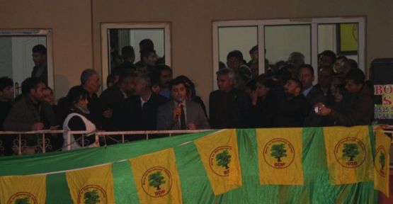 Ardından kısa bir konuşma yapan BDP İl Eşbaşkanı Baki Katar, bu seçimin kendileri için bir referandum niteliğinde olduğunu belirterek, "Biz parti olarak sadece belediye seçimi olarak girmiyoruz. Biz serok Apo'nun özgürlüğü için seçimlere gireceğiz" dedi. İl Eşbaşkanı Hami Akti ise, "Botan halkının bu seçimde de her alanda olduğu gibi özgürlüğünü isteyeceğini" söyledi.