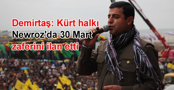 BDP Eş Genel Başkanı Selahattin Demirtaş'ın sahneye çıkmasıyla alandaki coşku artarken, uzun süre havai fişek gösterisi yapıldı. Demirtaş, halkı Kürtçe selamladı. Demirtaş, "Botanın yiğit halkı bugün bu alan bu kadar mı güzel olur? Newroz'un bütün güzellikleri ve direnişi Şırnak halkının gözlerindedir. Bütün Botan halkı başta olmak üzere tüm Kürdistan halkımızın, gençlerimizin, annelerimizin yediden yetmişe bütün Şırnak halkının Newroz'u kutlu olsun" dedi. Bu yıl Newroz'un her zamankinden daha büyük bir coşkuyla kutlandığını belirten Demirtaş, "Halkımızın Newroz ateşi her geçen gün daha da gürleşerek bu günlere geldi. 1992 yılında diliyle, kültürüyle, kimliğiyle yaşamak istediklerini dile getiren Şırnak halkımız bu alanda devletin asker ve polisi tarafından bu binalardan sıkılan kurşunlarla taranarak 84 yurttaşımız katledildi. Bütün şehitlerimizi saygıyla anıyoruz. Bedelleri çok ağır, sancıları çok fazla olan bir mücadelenin ardından Kürt halkı Kürdistan ve Ortadoğu'nun en büyük gücü, en büyük siyasi hareketlerinden biri haline gelmiştir" diye ifade etti.