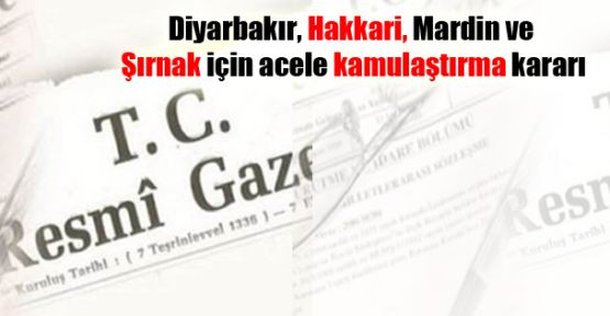 Diyarbakır, Hakkari, Mardin ve Şırnak’ta ‘acele kamulaştırma’ yapılacak.