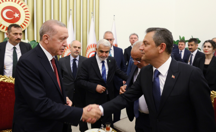 Daha sonra odaya TBMM Başkanvekili Celal Adan, HÜDAPAR Genel Başkanı Zekeriya Yapıcıoğlu, DSP Genel Başkanı Önder Aksal girdi. Ardından CHP Genel Başkanı Özgür Özel de Erdoğan'ın bulunduğu odaya geldi.