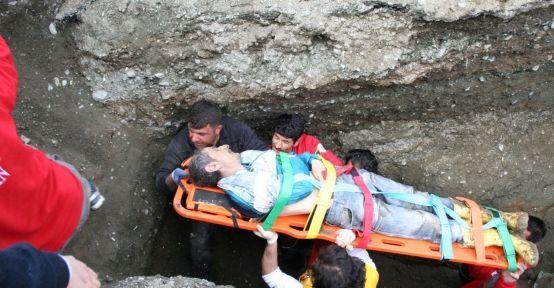 İşçiler, köyden yardıma giden köylülerin çabasıyla kurtarıldı.
