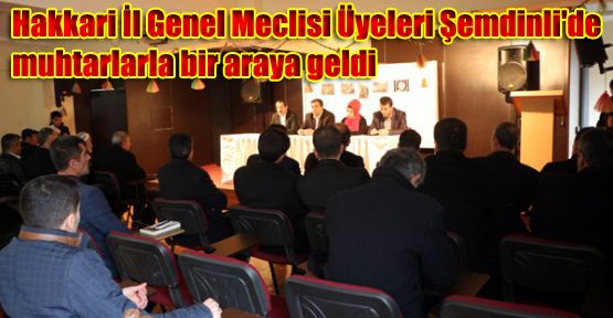 İl Genel Meclis üyeleri Şemdinli Belediyesi bünyesindeki Guldexwin Kültür Merkezi konferans salonunda düzenlenen toplantıda muhtarlarla bir araya geldi. İl genel meclis üyeleri burada muhtarların sıkıntıları dinlendi.