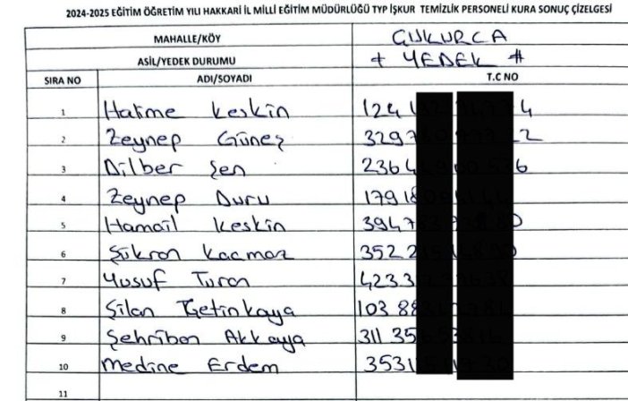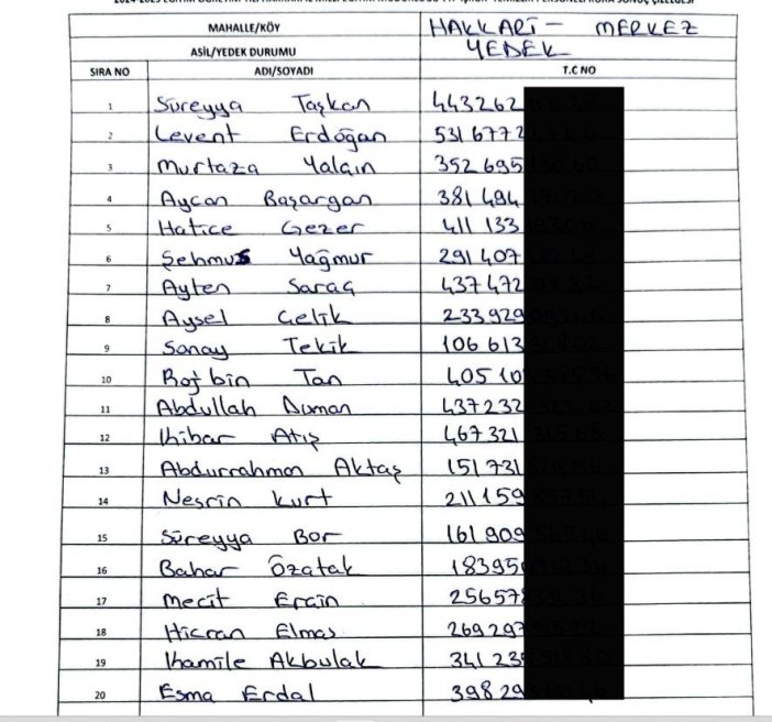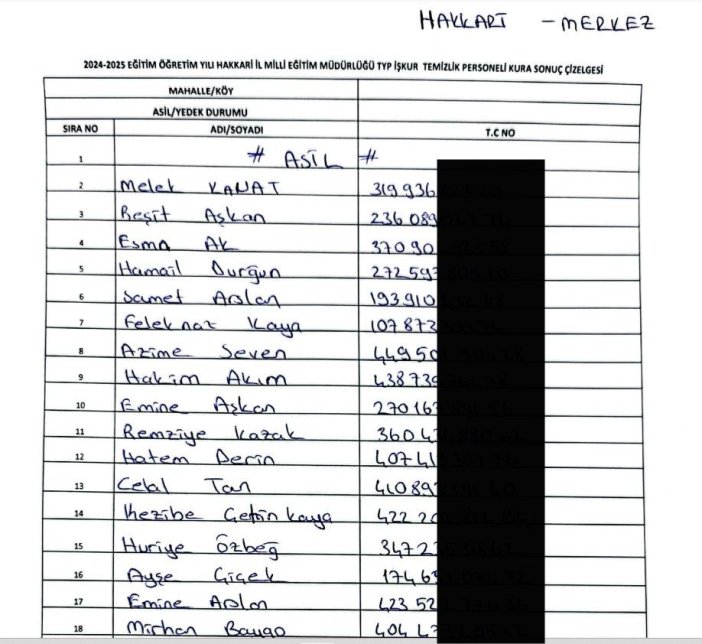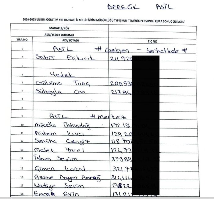 Hakkari Çalışma ve İş Kurumu Müdürlüğü (İŞKUR) tarafından, Milli Eğitim Müdürlüğüne bağlı okullarda istihdam edilecek 120 kişi için TYP kapsamında kura çekimi yapıldı. Halk Eğitim Merkezi Konferans Salonu’nda noter huzurunda gerçekleşen kuraya, Hakkari Noter Vekili Serdar Kundakçı, İl Milli Eğitim Şube Müdürü Erol Hanlıgi, İŞKUR personeli ve vatandaşlar katıldı. Kura sonucu belirlenen kişiler, Hakkari genelinde Milli Eğitim Müdürlüğüne bağlı okullarda görevlendirilecek. / Yüksekova Haber